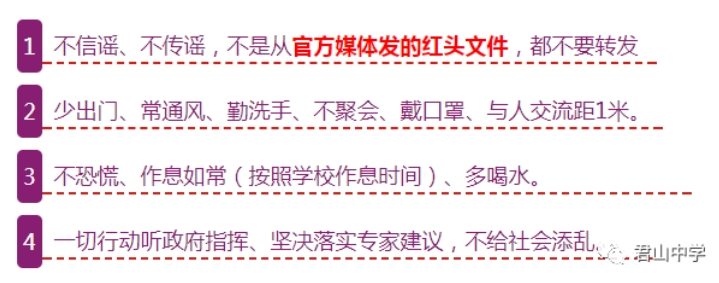 由于新型冠状病毒疫情防控战役没有结束,三个年级开学时间都没有确定,可能如期,也可能延迟。请各位同学呆在家里,哪儿都不要去,并且阻止亲戚来家串门,在家中做好病毒相关宣传工作,随时准备听学校通知返校复课。