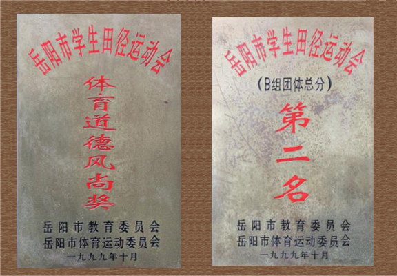 1999年岳阳市学生田径运动会B组团体总分第二名和体育道德风尚奖
