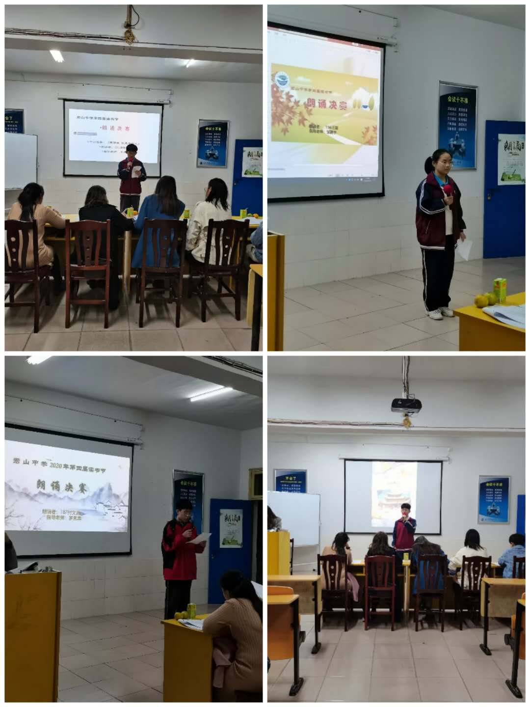 本次比赛以班级为单位参赛,进入决赛的班级共有22个班级22名学生进入决赛。在政教处的精心组织和各班主任和语文老师的配合下,各参赛班级在朗诵内容上下足了功夫,有的选择大气磅礴的诗词,朗诵起来气贯长虹,表达对祖国、对民族的热爱;有的主打婉约情感路线,抒发对青春、对生命的赞美,娓娓道来,情真意切。