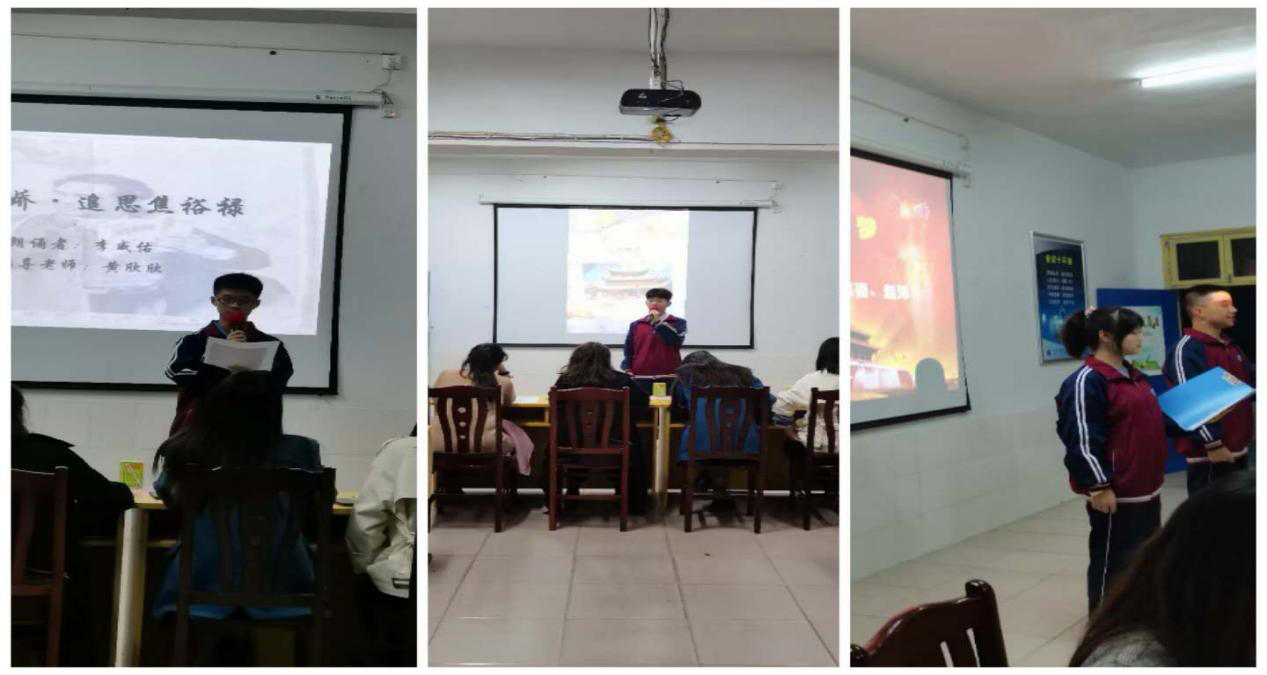 在比赛中,同学们以饱满的激情,昂扬的气势,抑扬顿挫的语调,配合着意气风发、自豪自信的语言和动作,追溯了过去的岁月,讴歌了祖国腾飞的成就。比赛现场回荡着同学们郎朗的诵读声,时而慷慨激昂,时而低沉委婉,时而热情奔放……一首首动人的诗歌,伴随着悠扬的旋律,从参赛同学的心中喷发出的深情,令观看演出的同学与评委老师们深深沉醉在诗歌的殿堂之中。