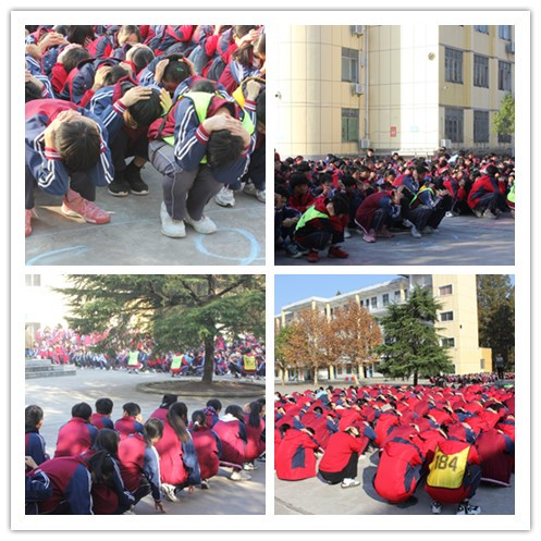 9点整,随着学校上空的警报声骤然响起,同学们迅速放下手中的书本,紧张而有序地冲出教室,按照规定路线,有序撤离到学校操场指定区域,安全撤离的同学依照指挥老师的要求,双手抱头,或用书本、椅垫等物品挡住头部,蹲在地上。集合完毕后各班马上清点人数,并报告给现场总指挥。