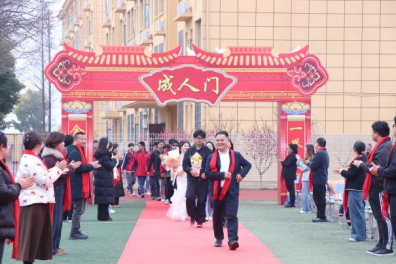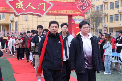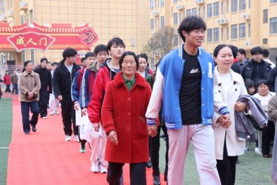 一步之间,迈向新程。在悠扬的乐曲中,各班班主任率先前行,引领着高三学子与家长携手,跨过象征成长与独立的“成人门”。此门一跨,不仅意味着年满十八,更寓意着从少年到成人的身份转变与责任加身。一位学生家长孙女士在跨过门后激动地表示:“我希望我的孩子跨过这道门,对自己负责,对家庭负责,也要对社会负责,做一个对国家有用的人。”