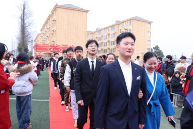 3月19日下午,君山中学校园内气氛庄重而热烈。以“十八而志,大任始承;百日冲刺,青春无悔”为主题的2026届高三成人礼暨高考动员大会在学校操场隆重举行。校领导、高三年级全体师生及学生家长齐聚一堂,共同见证学子们跨入成人行列的重要时刻,并为高考最后冲刺吹响号角。