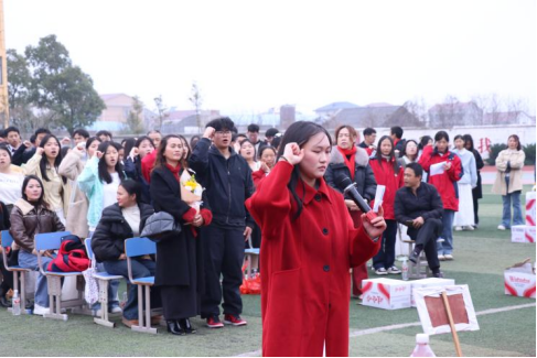 誓言震天,决胜高考。大会的最高潮,在225班史凯德同学的领誓下到来。全体高三学子高举右拳,以青春的名义庄严宣誓:“八十天,我要排除万难!八十天,我要百炼成钢!2026年,高考必胜!”铿锵誓言,响彻云霄,彰显了决胜考场的无畏斗志与坚定信念。
